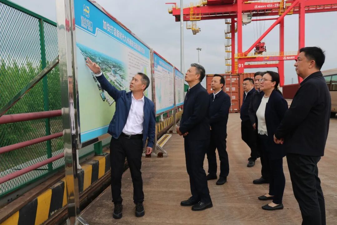 会谈前,周勇士一行实地察看三江港综合码头5-8号泊位运营情况,踏勘三江港进港铁路项目规划选址并了解线路衔接及前期推进情况。他强调,鄂州公司要积极主动向地方政府汇报对接,力争将三江港铁水公空多式联运铁路集疏运基地项目纳入鄂州市综合货运枢纽补链强链项目库;要加快推进三江港铁路进港项目,打通铁路进港“最后一公里”,切实提升枢纽能级;要统筹完善铁水公空多式联运体系,畅通全域物流运输通道,做强临港加工产业基地,搭建综合贸易服务平台,不断放大港口集聚辐射效应。