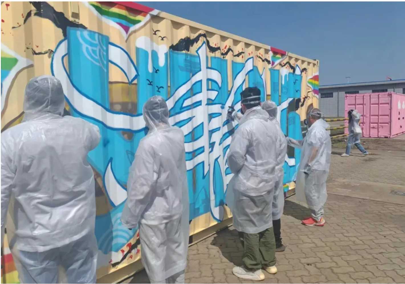 一笔一墨彰显青春蓬勃的力量,绽放出武港青年靓丽的底色,20余名团员青年代表齐心协力“翻新”,锈迹斑斑的集装箱摇身一变,成为“武港限量版”,五彩斑斓的颜料,天马行空的创意,多样的创作视角,展现了武汉港新时代青年,不怕吃苦迎难而上的精神风貌。