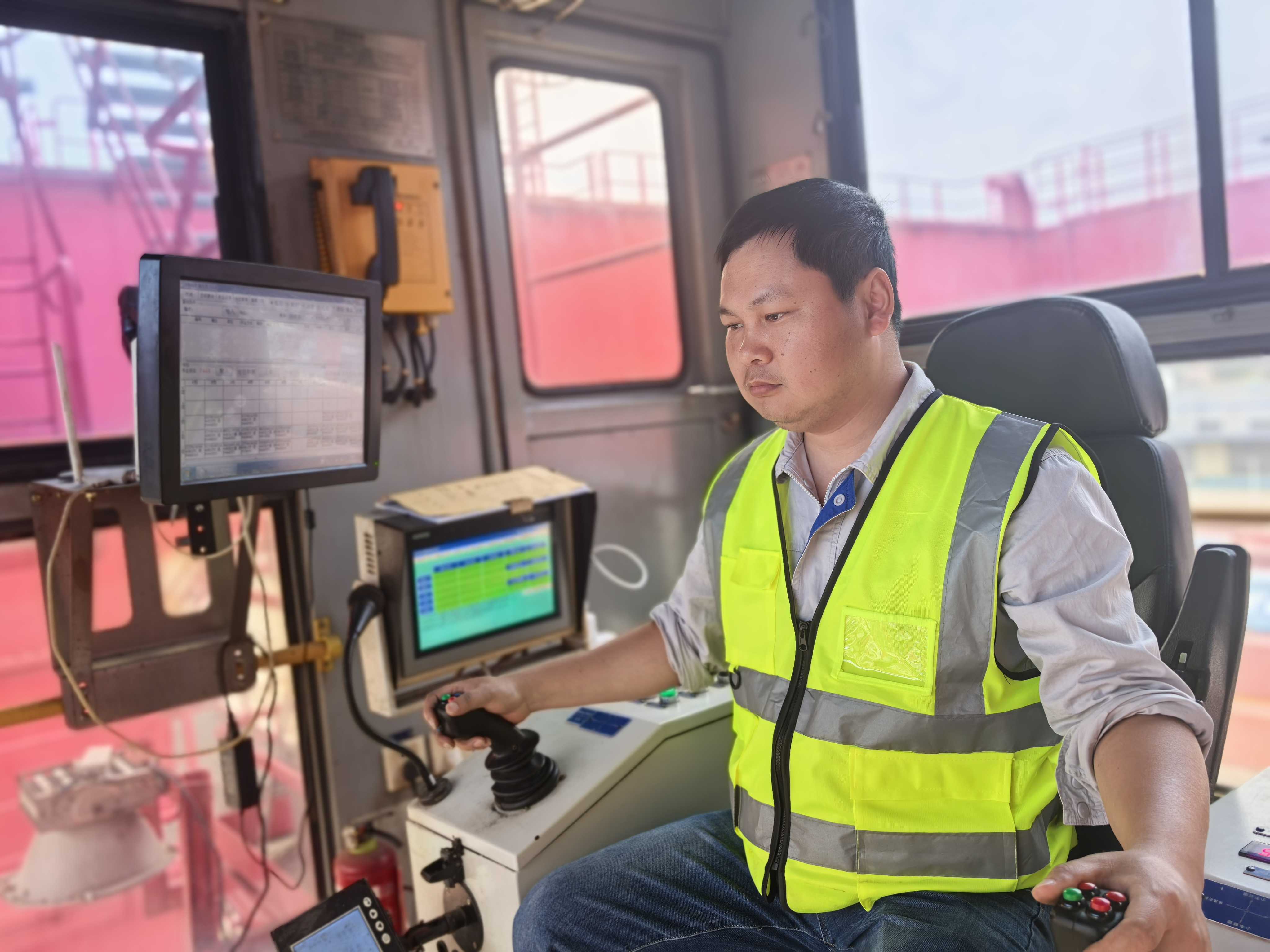 董运积极投身技术创新。针对雨天和昏暗环境下的操作安全隐患,他提出在吊具上加装感应器和报警器的方案。通过智能化预警功能构建起全方位安全防护体系,使作业现场安全管理水平显著提升,成功实现安全事故“零发生” 的良好成效。此外,他对待设备就像士兵爱护自己的枪一样,为每台设备制定详细的维护计划,每日提前到岗对电机、制动器等关键部件进行例检,及时发现并处理隐患,设备完好率达99%,切实筑牢港口安全生产防线,全力守护港口生产生命线。