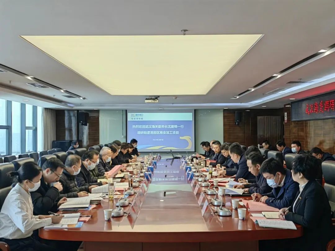 2月7日,武汉海关党委委员、副关长沈建明调研阳逻综保区粮食加工项目,与集团公司党委书记、董事长涂山峰,湖北农发集团党委书记、董事长朱万奎座谈交流。