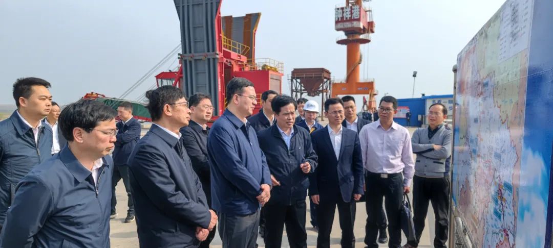 3月7日下午,湖北省副省长盛阅春一行赴钟祥石牌港调研码头建设运营情况。省交通运输厅总工程师陶维号,湖北港口集团党委书记、董事长涂山峰,荆门市委副书记、市长陈家伟,荆门市副市长刘克雄陪同调研。