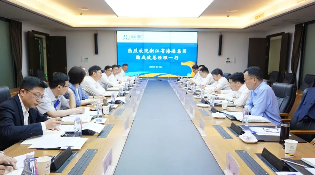 4月18日,湖北港口集团党委书记、董事长涂山峰会见来访的浙江省海港集团总经理陶成波一行,双方就深化务实合作进行深入座谈交流。