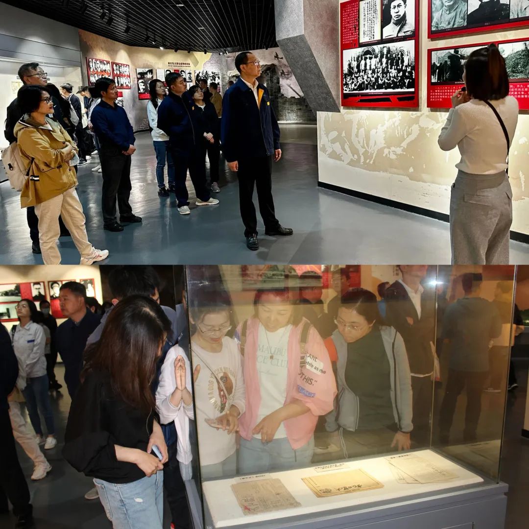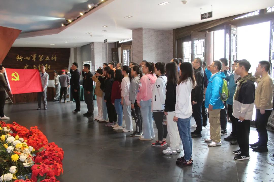 在姚家山红色革命教育基地,职工们参观了新四军第五师历史陈列馆。在鲜红的党旗下,大家重温入党誓词。随后,在讲解员的引导下,大家用心感受了“武汉抗战第一村”历史背后的每一段故事。