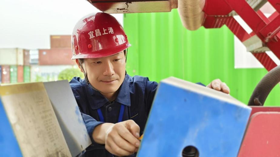 1999年,他告别部队进入宜昌港务集团工作。从一名修理工做起,拧过螺栓,上过浮吊,开过全宜昌第一台专业集装箱岸桥。从基层一路走来,现在的他带着四十余名员工的队伍,担负着保障宜昌水运口岸昼夜运转的责任。