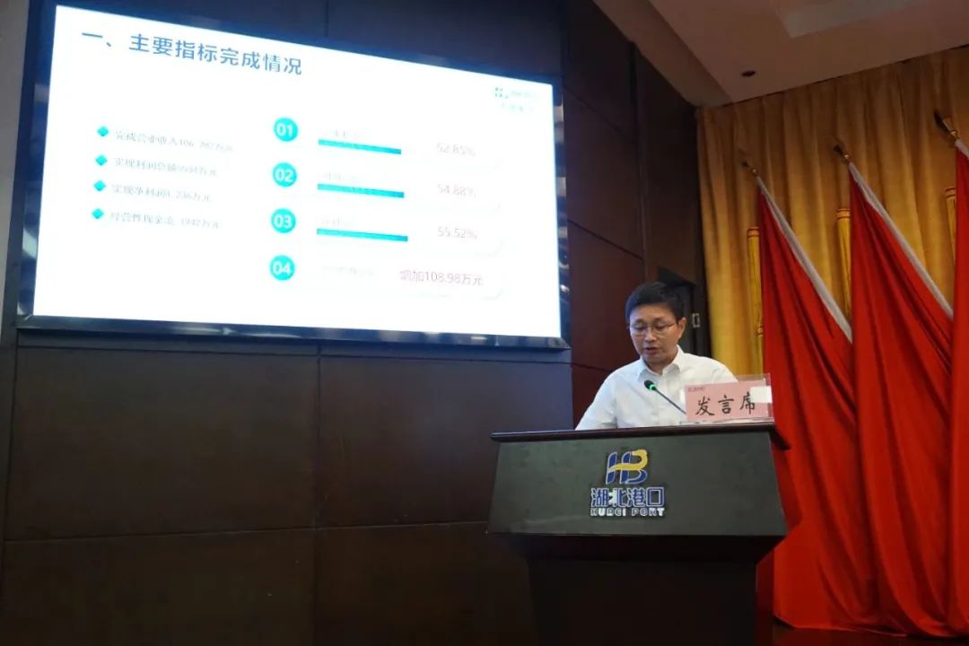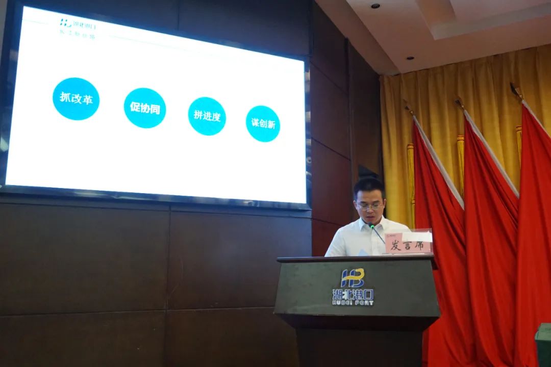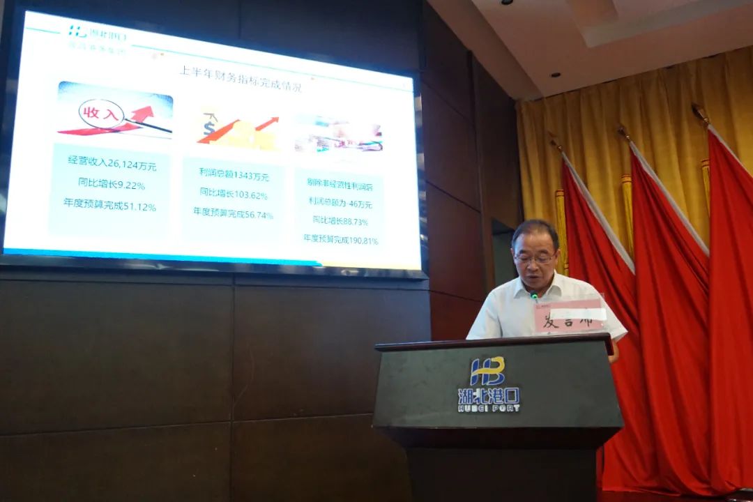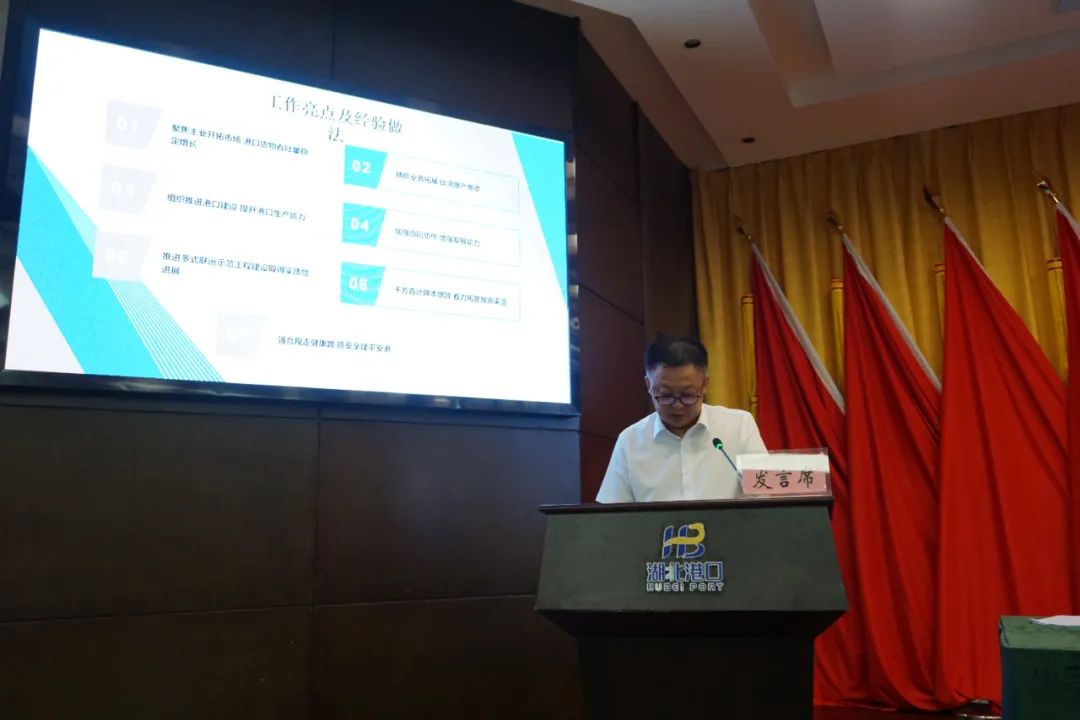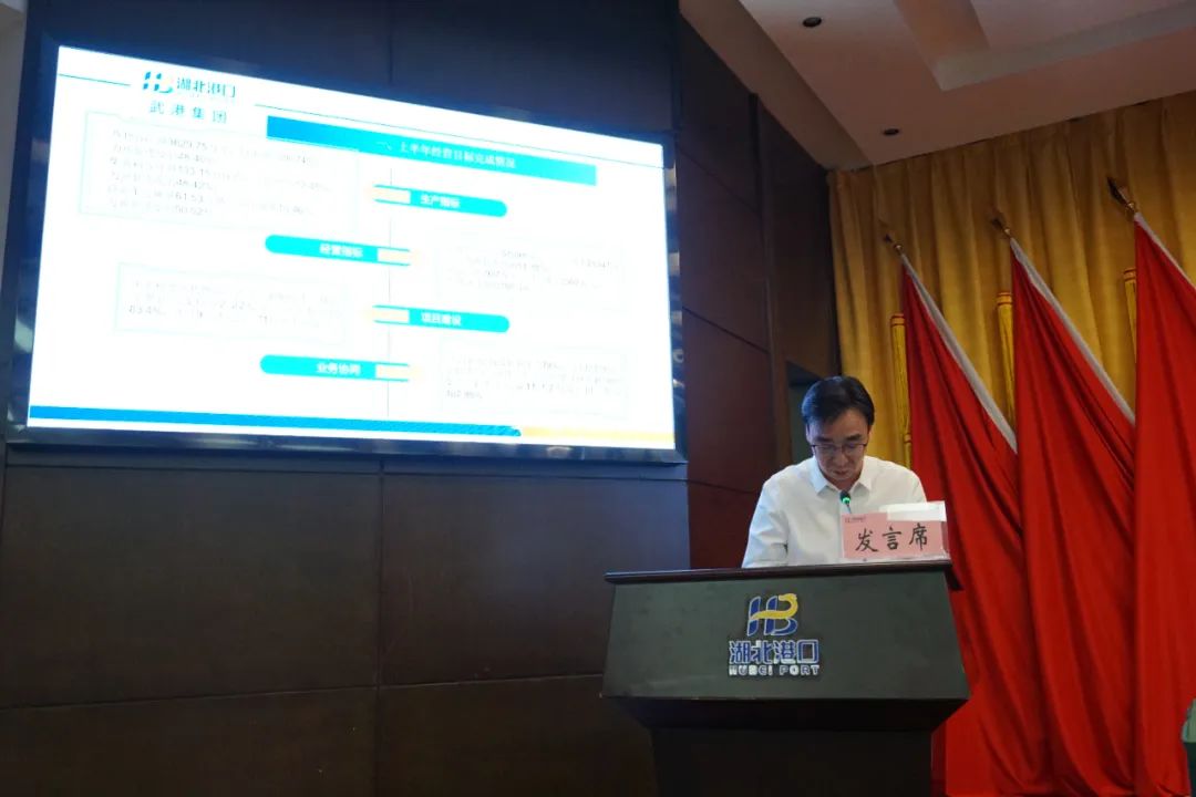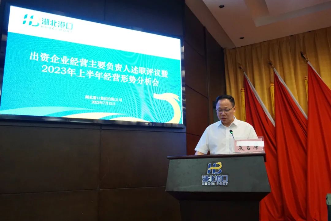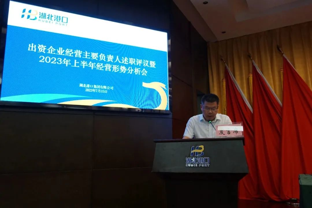 7 月 15 日,湖北港口集团召开出资企业经营主要负责人述职评议暨 2023 年上半年经营形势分析会,深入贯彻落实省委省政府年度工作部署和全省稳增长工作推进会精神,全面总结上半年工作,晒成绩、比业绩,找差距、促交流,分析形势、找出问题,号召集团公司上下统一认识、提振精神,以更加明确的目标、更加有力的举措,更加实在的行动,推动集团公司各项工作进入快车道,努力实现年度各项任务目标。集团公司党委书记、董事长涂山峰出席会议并讲话。党委副书记、总经理何宪礼主持会议。