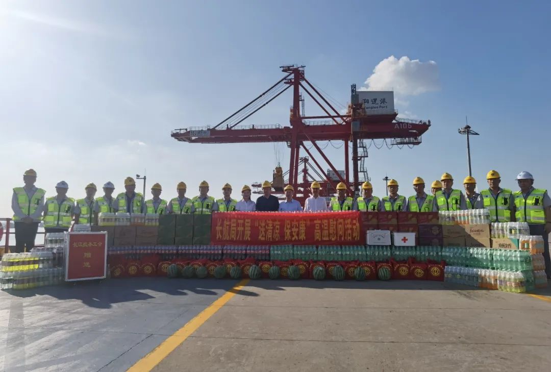 座谈会后,在何宪礼的陪同下,刘亮一行到阳逻港参观了十周年展厅,并前往码头前沿开展慰问活动。在码头前沿,刘亮反复叮嘱要注意防暑降温,同时要求切实做好防暑降温工作,根据工作实际合理安排作业,做到安全在岗,安全作业,确保高温天气一线职工安全度暑和各项工作有序开展。