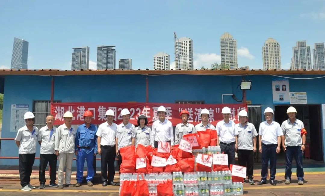 调研座谈会结束后,付明贵、何宪礼到华中港航集团四唯港区,开展2023 年夏季“送清凉”慰问及安全检查工作,为高温下坚守岗位的一线员工送去了各类防暑降温用品,向全体职工致以敬意和关心关爱,并叮嘱一线职工提高安全意识,完善安全措施,做到生产有序,安全渡汛,平安度夏。