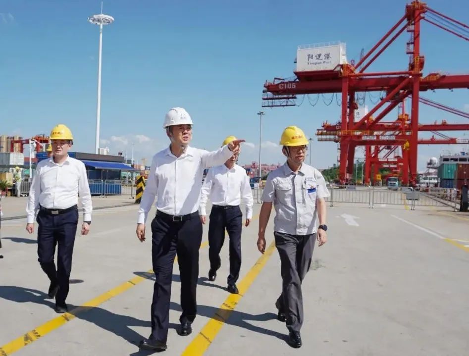 7月27日下午,集团公司党委书记、董事长付明贵调研阳逻港建设发展和生产运营情况。
