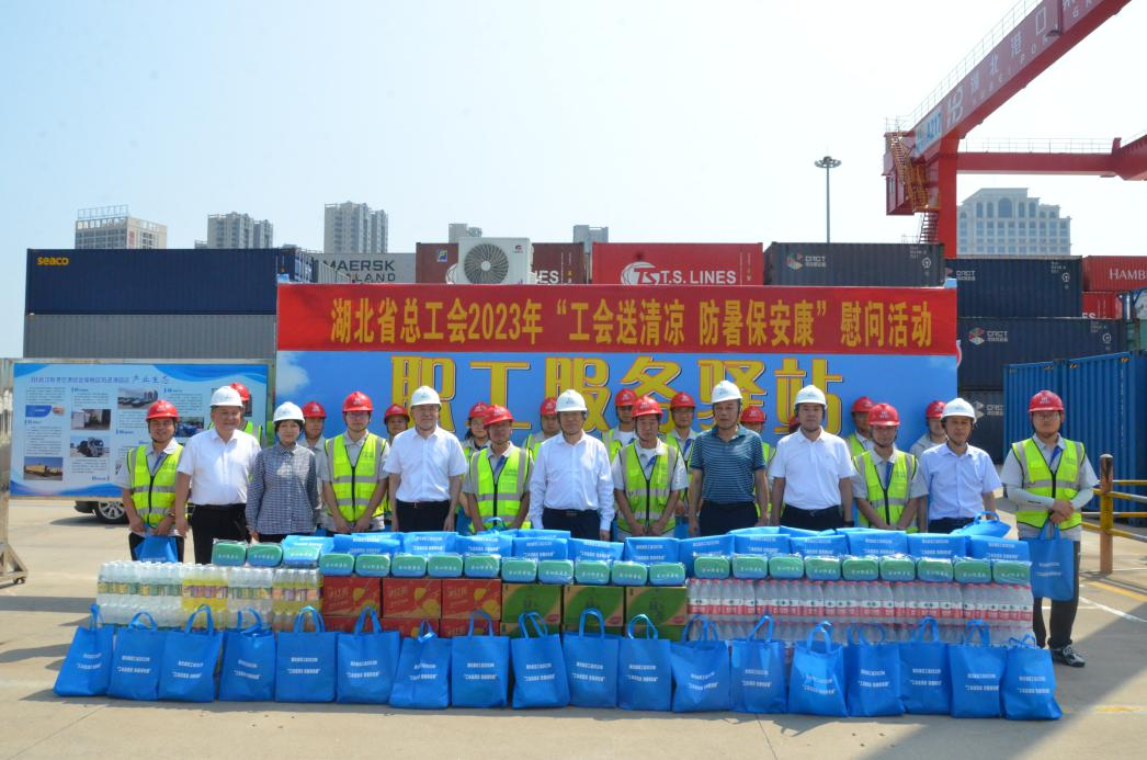 7月26日,湖北省总工会党组成员、副主席冯家欣,经技部部长罗天、基层工作部部长夏勇、经技部副部长付向东一行,到湖北港口集团开展“工会送清凉 防暑保安康”慰问活动,湖北港口集团党委副书记陈伯虎陪同慰问。