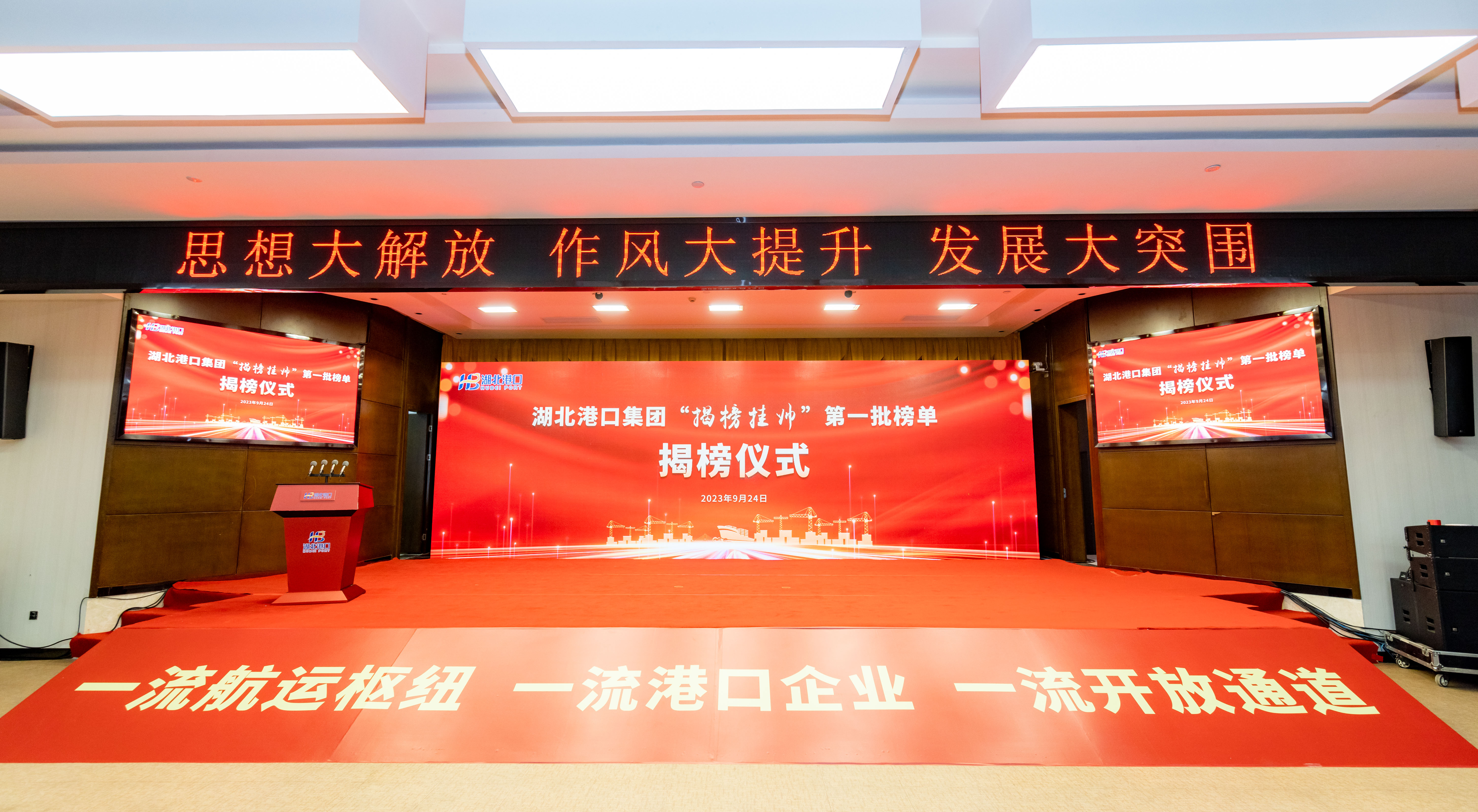 战鼓阵阵催征,宣誓声声激荡!9月24日,湖北港口集团举行“揭榜挂帅”第一批榜单揭榜仪式,5个团队交上了“请战书”、立下了“军令状”,聚力扫除制约企业长远发展和达成年度目标的“绊脚石”,吹响了集团公司对标一流、争当一流的“冲锋号”。集团公司党委书记、董事长付明贵出席会议并作动员讲话,党委副书记、总经理何宪礼主持会议,集团公司领导班子成员、高管出席会议。