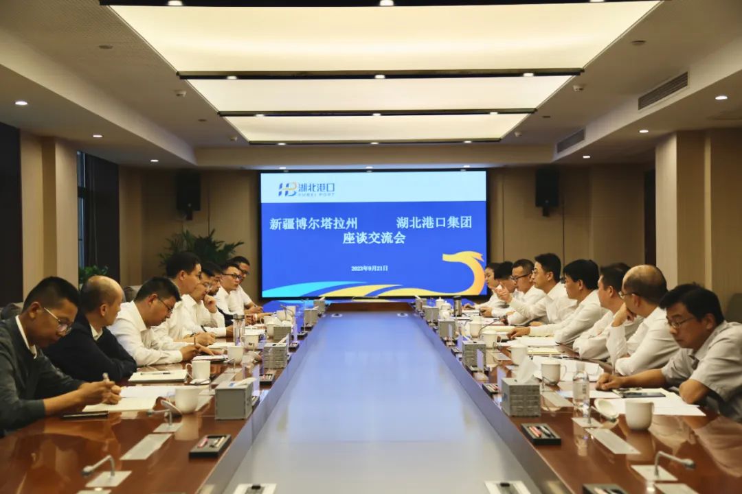 9月21日,新疆维吾尔族自治区博尔塔拉蒙古自治州副州长杜应昆一行到访湖北港口集团,与集团公司党委副书记、总经理何宪礼就深化务实合作、发展援疆产业进行座谈交流。