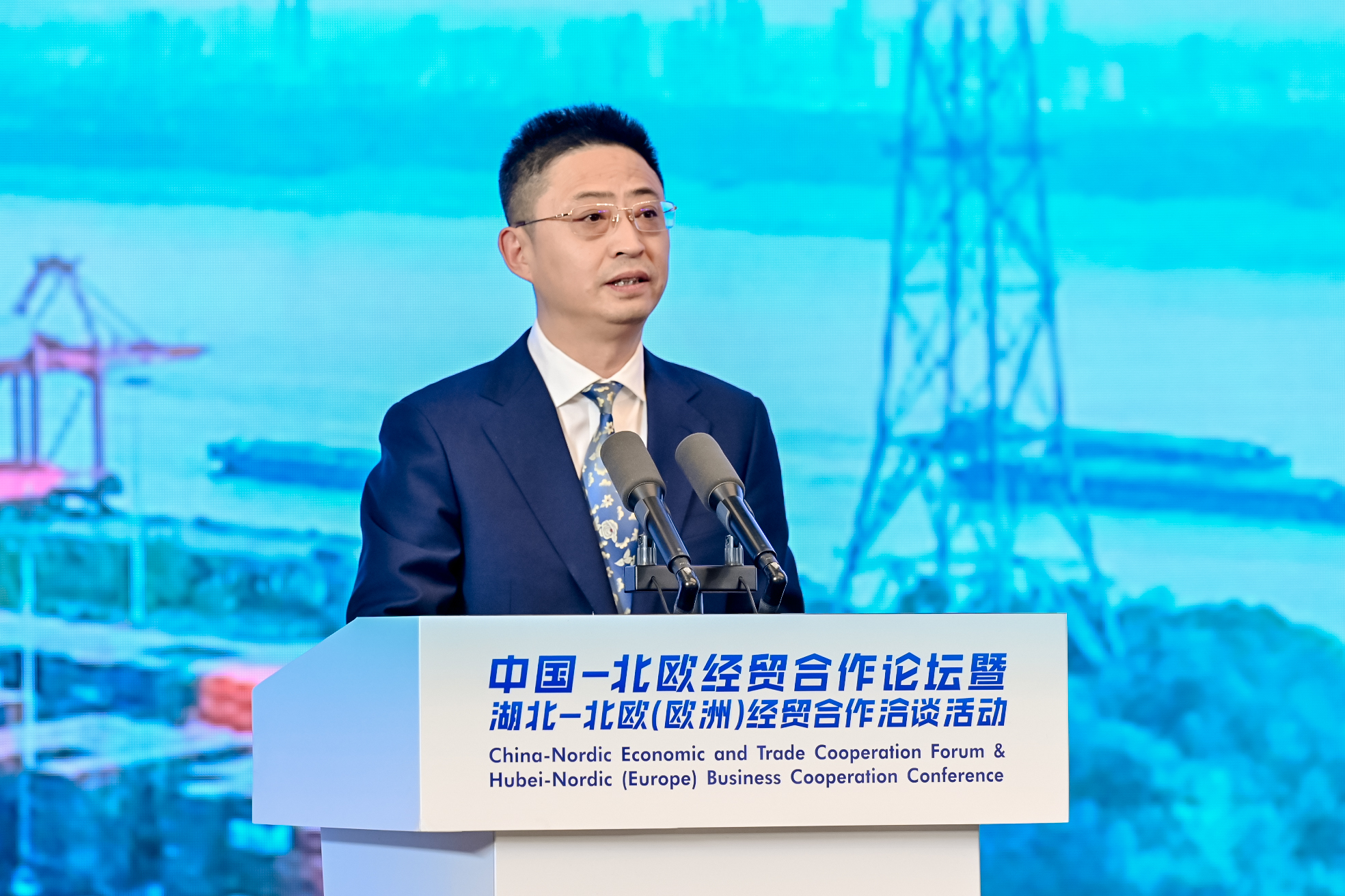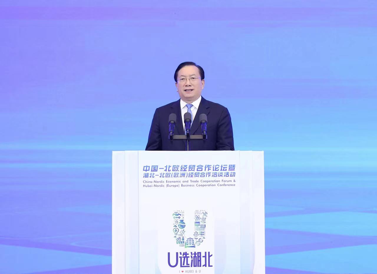 11月14日上午,以“打造新质生产力,谱写对欧新篇章”为主题的2023中国—北欧经贸合作论坛暨湖北—北欧(欧洲)经贸合作洽谈活动,在武汉东湖国际会议中心开幕。省委副书记、省长王忠林出席并致辞。
