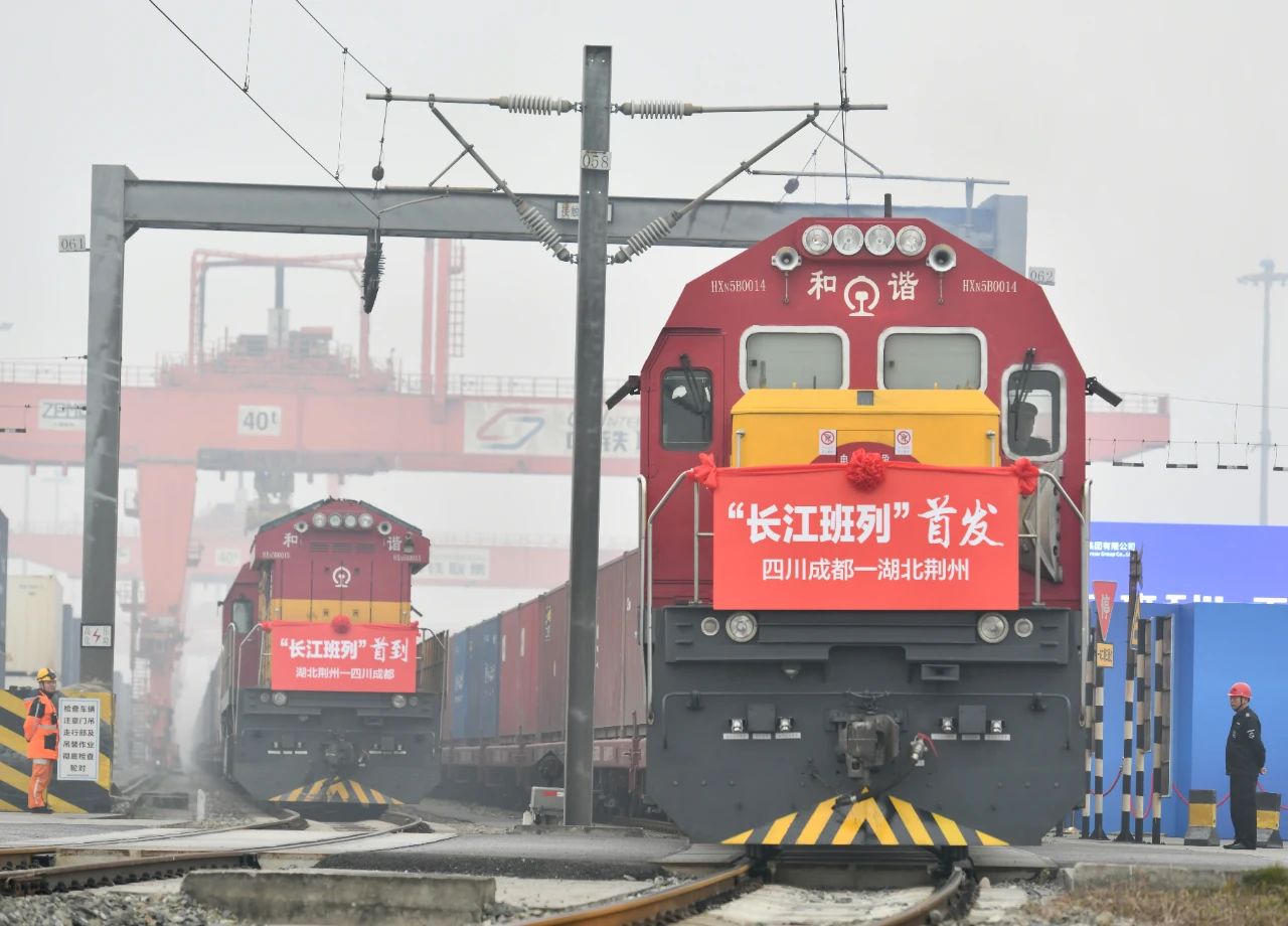12月10日上午10:00,满载着钛白粉、元明粉、玻璃纤维、汽配、电子小商品等物资的列车缓缓从四川成都青白江城厢中心站开出,由成都开往湖北荆州的铁水联运“长江班列”成功首发。四川省委常委、省政府常务副省长董卫民出席首发仪式并宣布铁水联运“长江班列”发车,他对湖北港口集团为促成该班列开行所付出的努力给予充分肯定。湖北港口集团党委副书记、总经理何宪礼应邀参加首发仪式并发言。