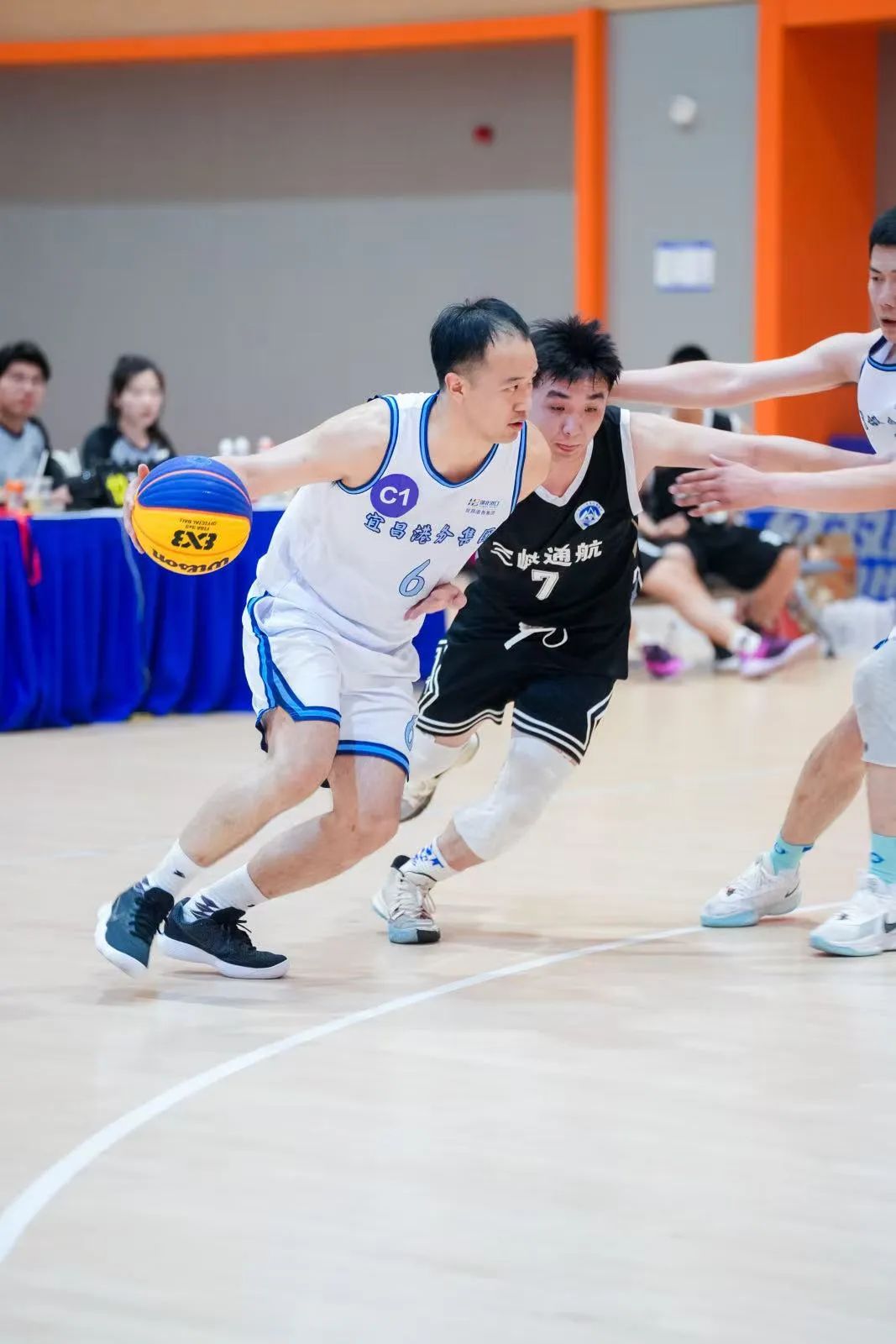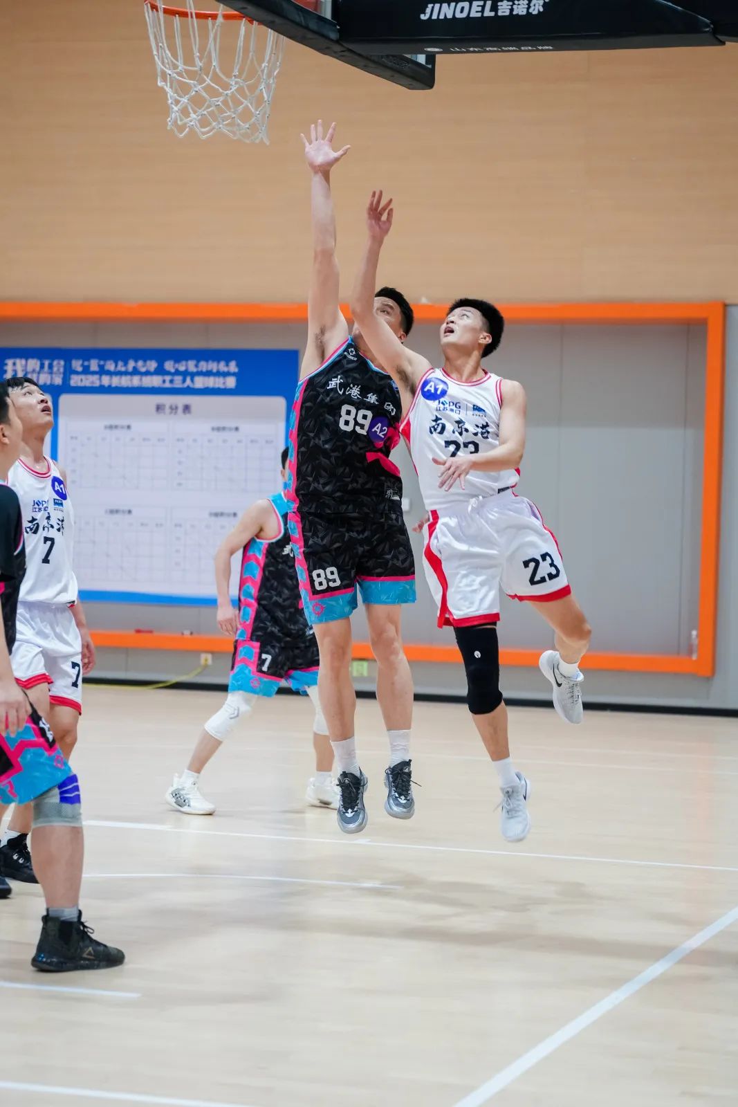 进入淘汰赛阶段,各队争夺更趋白热化。宜港集团、武港集团代表队展现出破釜沉舟的勇气和一往无前的斗志,队员们每球必争、每分必拼,他们快速突破、敏捷抢断、冲击篮筐,在攻防战中拼尽全力,点燃了热血与激情,赢得了场下观众的阵阵喝彩。