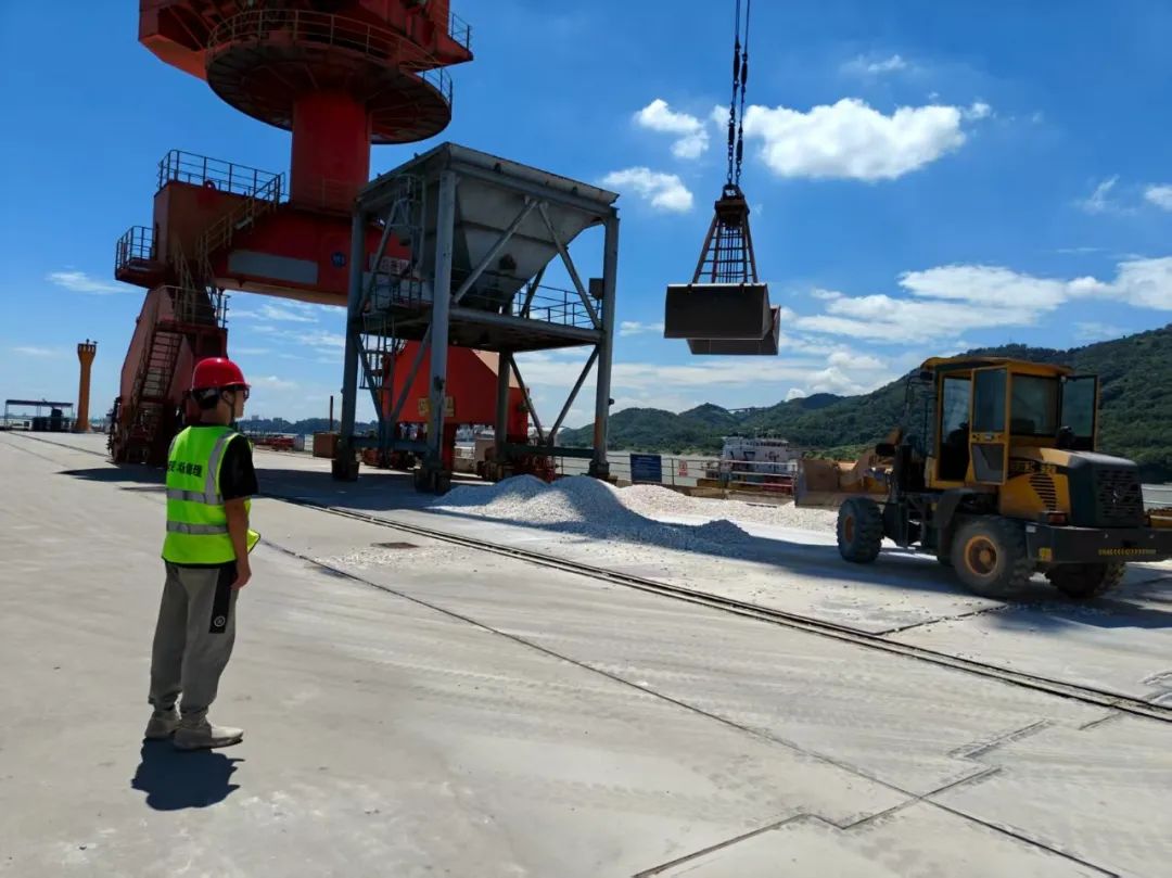 武穴振航码头前沿作业区热浪蒸腾,地表温度直逼50℃。现场安全监督员黎学东保持专注,他紧盯每一个作业环节,确保吊装作业信号传递准确无误。8月8日,该码头单日完成装卸量12714吨,创下历史新高。
