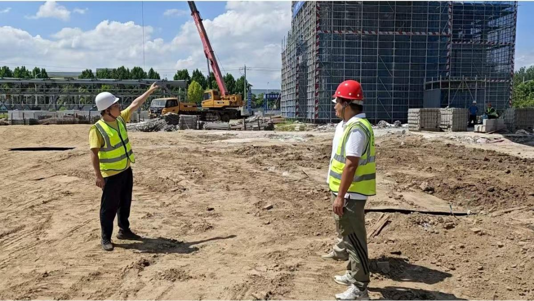 在浠水港散花港区固昌综合码头项目建设现场,浠水港埠物流有限公司工程主管陈哲与监理、施工单位现场负责人联合办公,他们头顶烈日、脚踩热土,跟踪工程进度,检查材料质量,现场协调解决疑难问题,全力推动项目早日竣工投产。