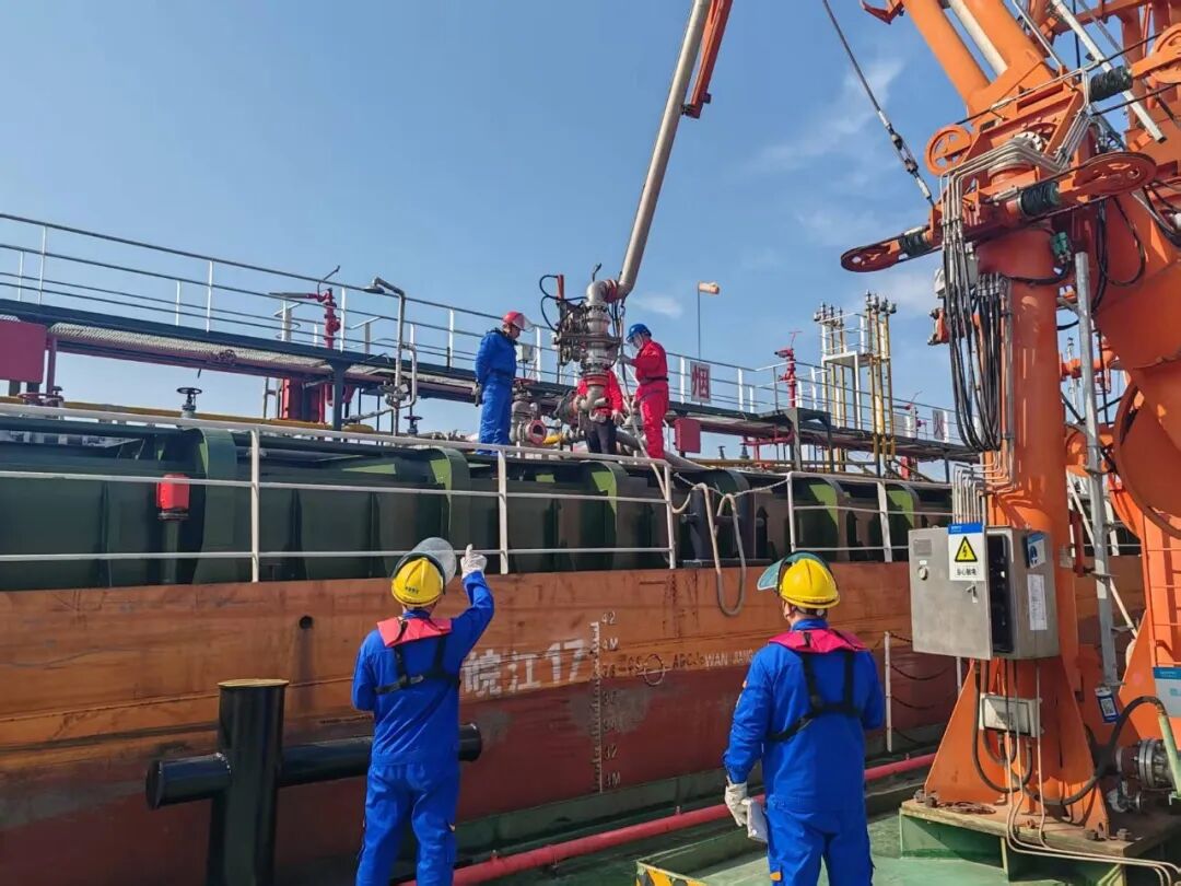 江陵石化港区严守安全生产底线,强化现场管控与隐患排查,做好设备防冻凝及消防应急准备,科学调度生产,保障大客户华鲁恒升的产品高效发运。节日期间作业船舶7艘次,完成装船量1.44万吨,同比增长41.18%。