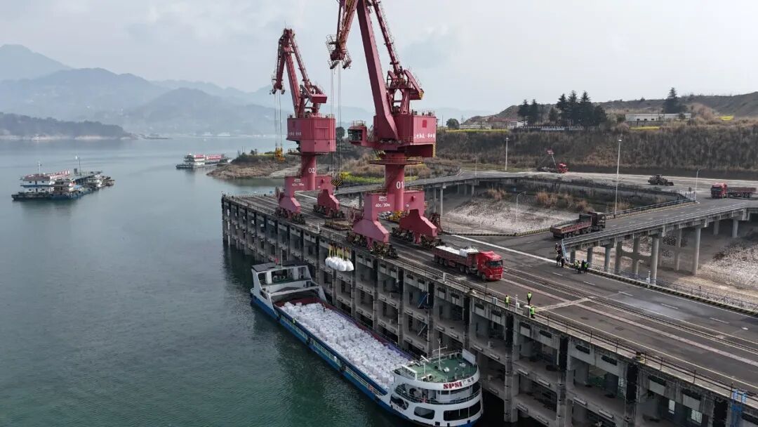 此次作业由三峡坝上秭归港与坝下宜都港协同完成。货物从秭归港卸船后,经三峡翻坝高速公路转运至宜都港装船,最终发运至长江下游后出口日本,既为三峡翻坝运输体系打造全新协同典范,又为长江经济带高质量水运注入强劲动能。