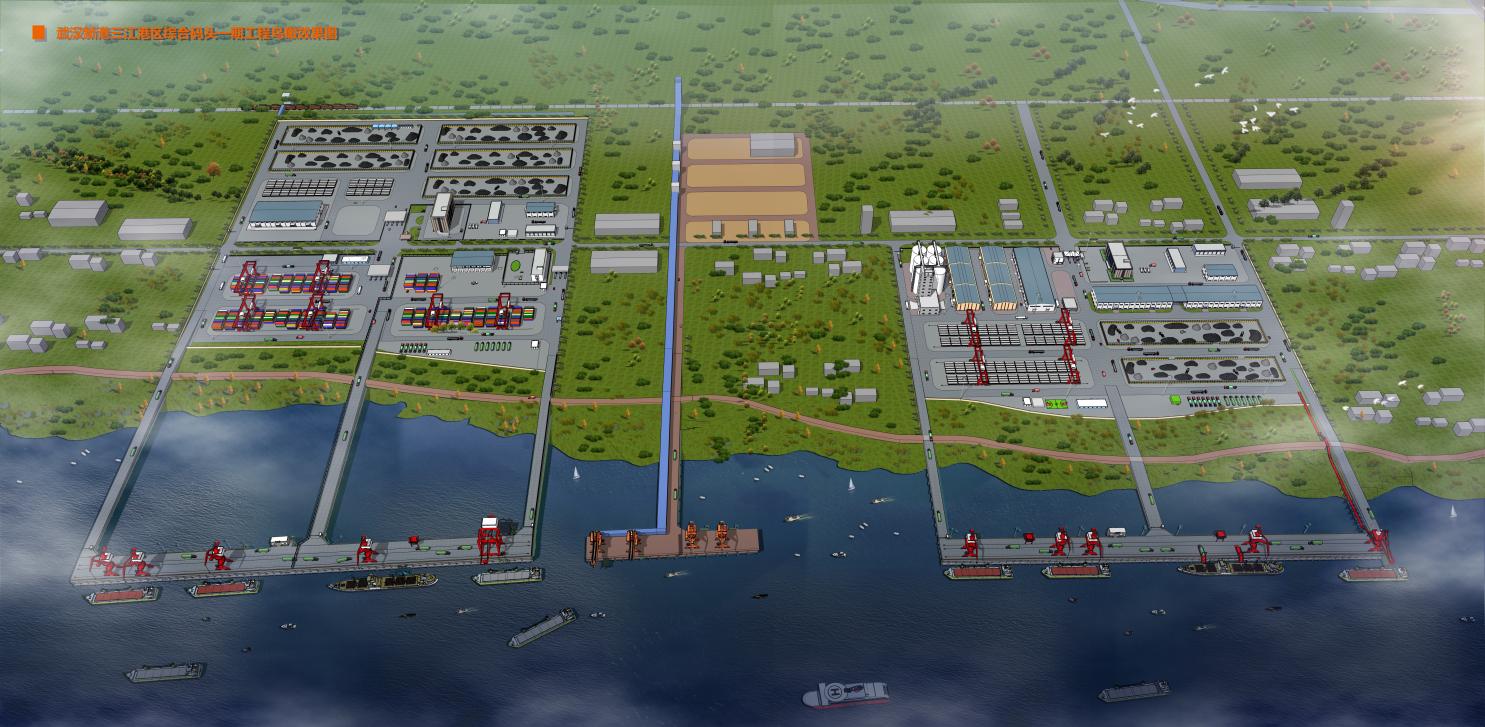 武汉新港三江港区综合码头一期工程项目法人为湖北长江三江港港口开发有限公司,位于长江中游黄州河段的沙洲水道上游段右岸,航道里程959.9~963.5km河段,下距鄂州市城区15公里,距黄石58公里,上距武汉市航道里程76km;紧邻316国道,后方有武九铁路,与上游黄冈公铁两用长江大桥约1.40km处,属武汉新港三江港区。